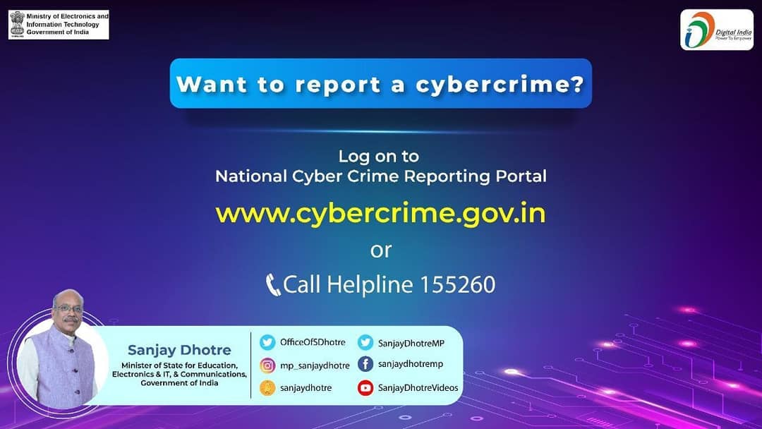 Cyber Crime Helpline: Dial 1930 for immediate support on financial cyber frauds.