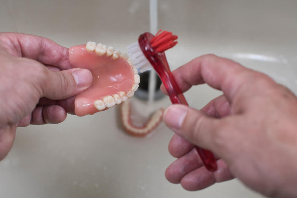 - Clean dentures daily – use a soft brush and soak overnight.